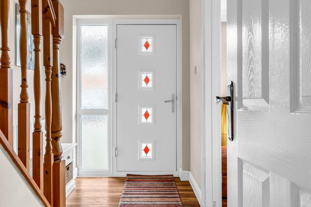 With double glazed window to front aspect, stairs rising to first floor landing, radiator, wood flooring, door to: