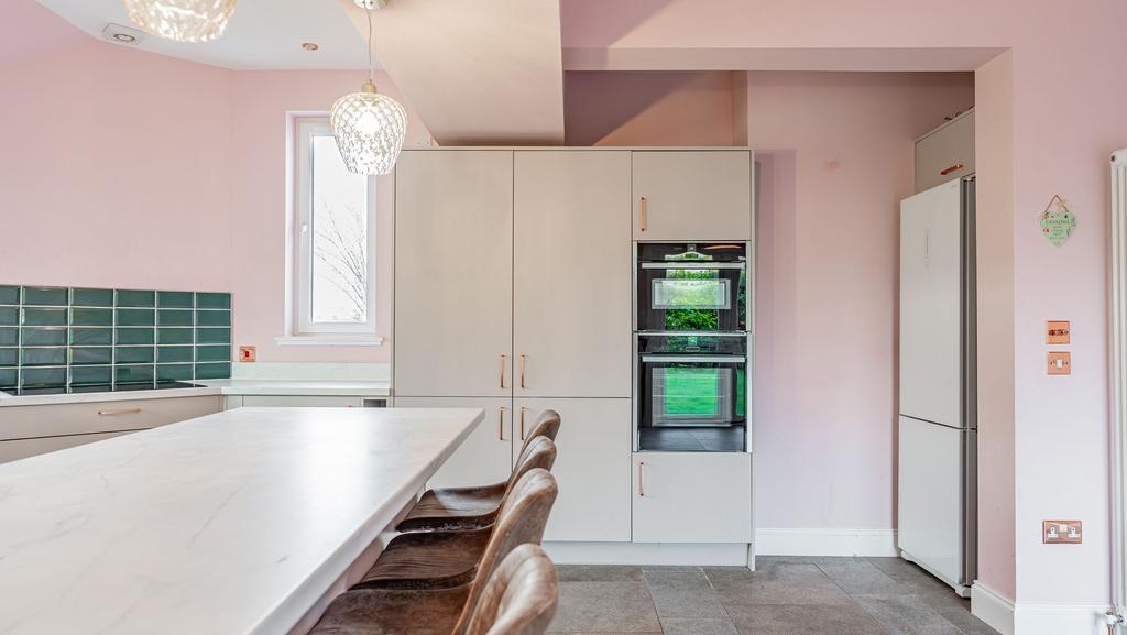 Number 2 Roman Road sits in a quiet residential suburb of Kirkintilloch and presents as a handsome five bedroom detached Edwardian villa with spectacular views towards the Campsie Fells. This former Manse is rich in traditional features and offers expansive, versatile accommodation arranged over two levels. The home is further enhanced by a modern dining-kitchen extension complete with integrated appliances.