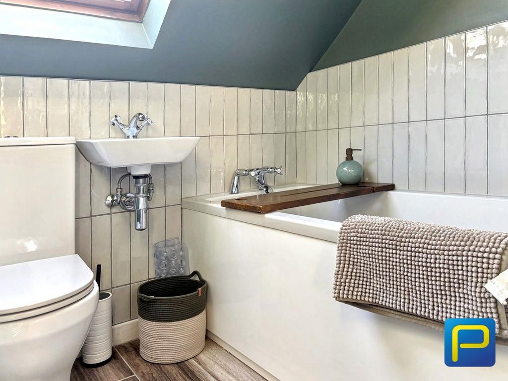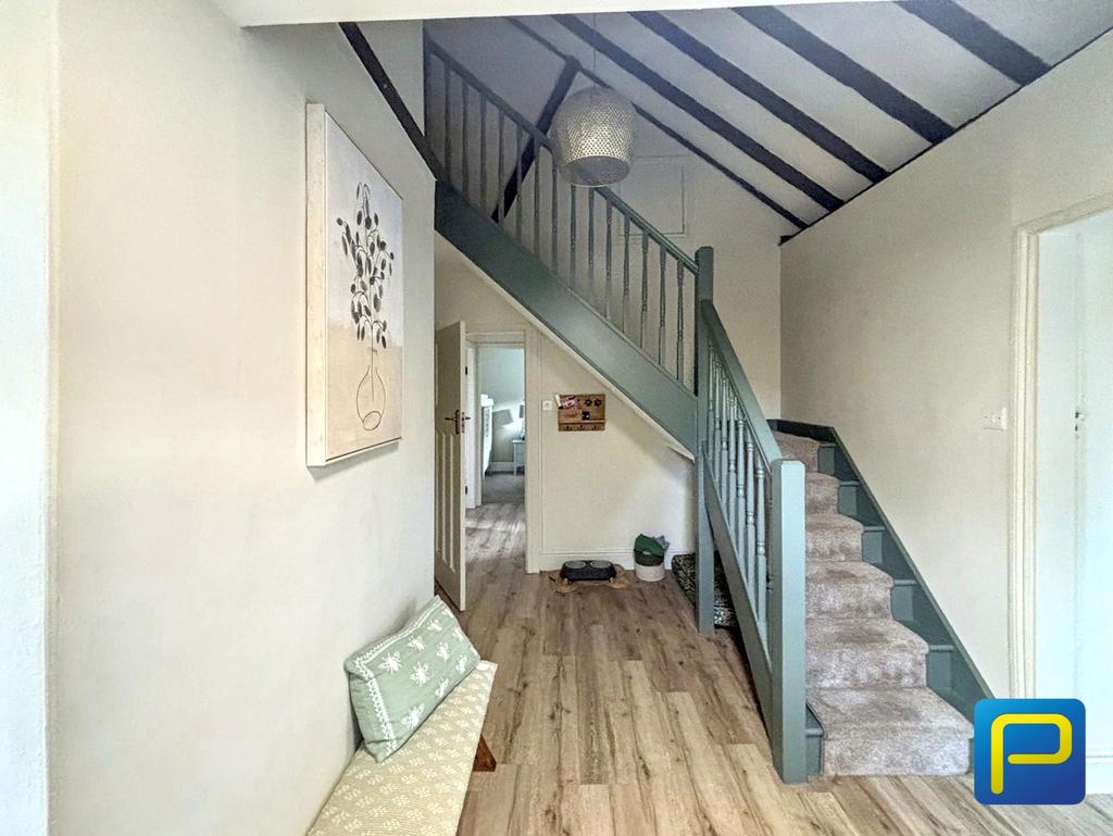 Cosy entrance hallway leading to living room, kitchen, 2 bedrooms & bathroom, stairs leading up to the master bedroom.