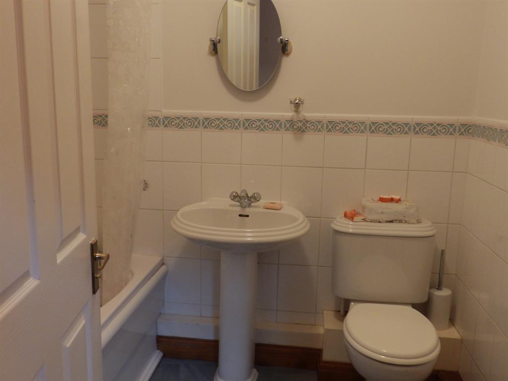 Bathroom - 1.83 x 2.13 - Fitted with a three piece suite comprising bath with shower over, low flush WC and handbasin. Part tiled walls; radiator.