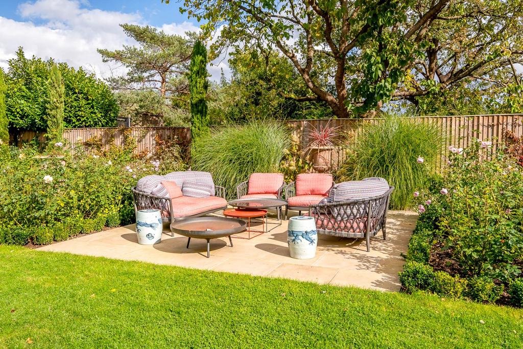 The ground floor boasts two elegant front facing reception rooms, one of which features French doors that open onto the beautifully landscaped front garden. A third reception room at the rear also benefits from French doors and leads to the rear garden. This space connects to a stylish wine and cocktail bar, and flows into a spectacular, light-filled kitchen. The kitchen/diner is a true centrepiece, featuring a central island/breakfast bar, skylights, and sliding glass doors that open onto a private terrace equipped with an outdoor kitchen, including a pizza oven and barbeque, perfect for entertaining. Beyond the terrace lies a beautiful landscaped well-maintained rear garden with a garden studio complete with air conditioning. The rear terrace and garden extend to approximately 105'' x 50'8" (32m x 15.5m). Additionally, there is a pantry, utility room, storage room, boot room with a shower and a cloakroom/WC.