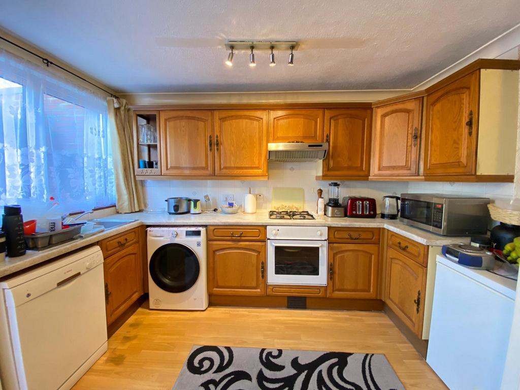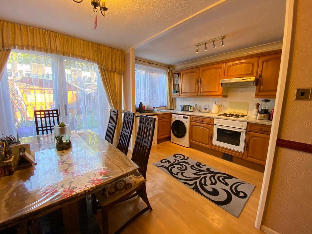 On the ground floor, there is a large kitchen and dining area that leads onto the garden, along with a utility room and WC.