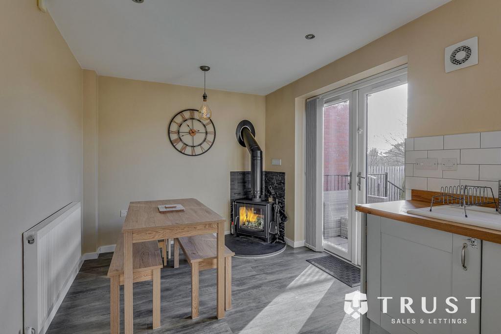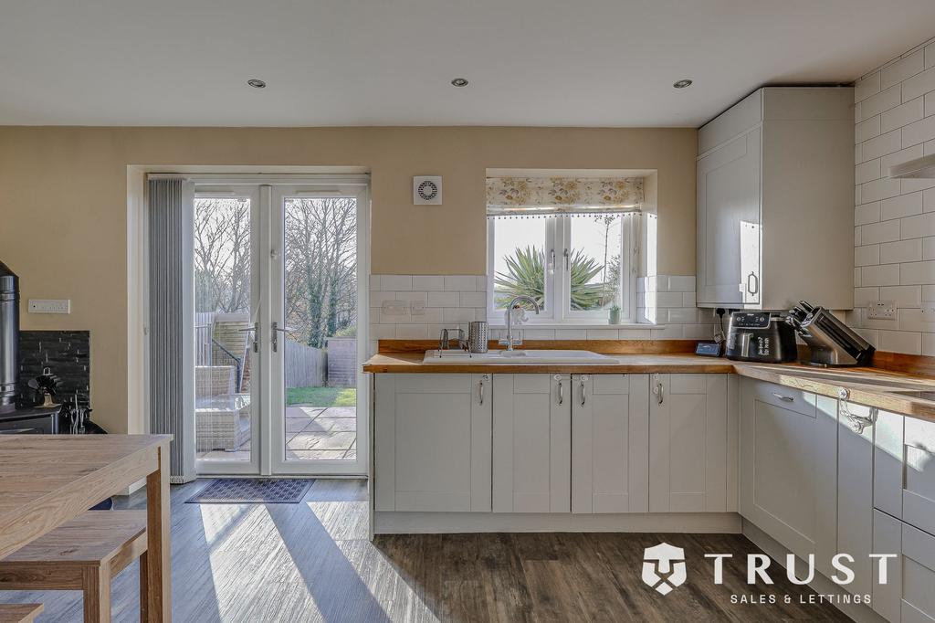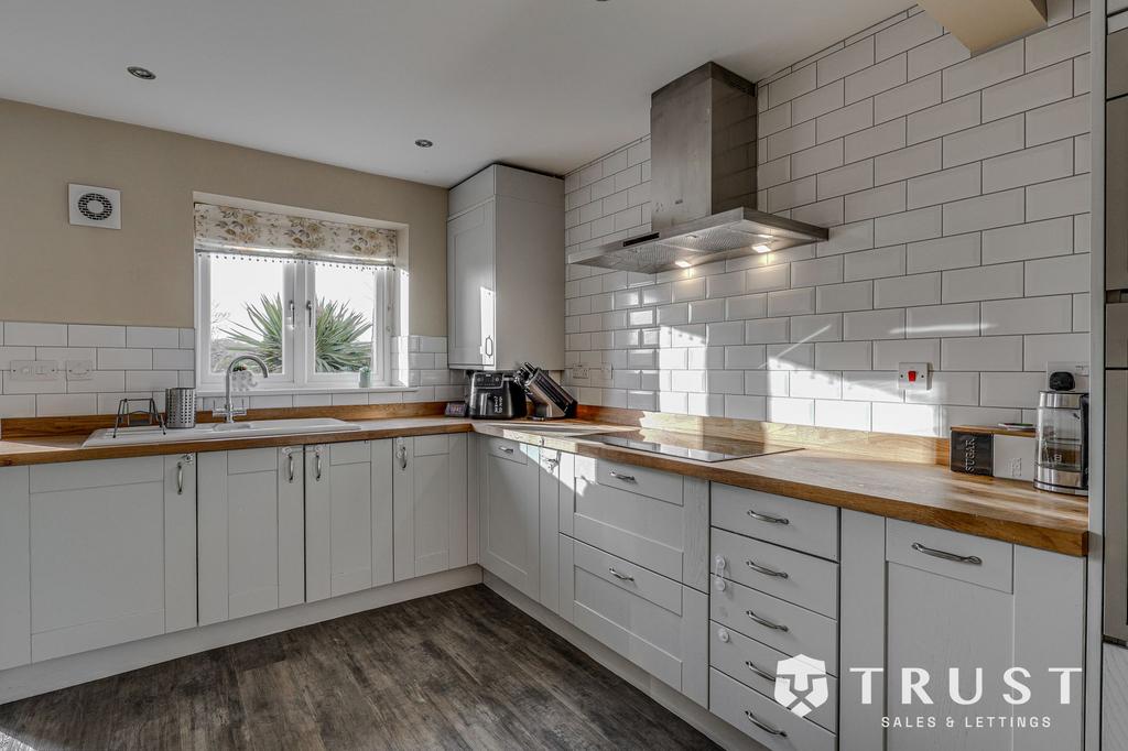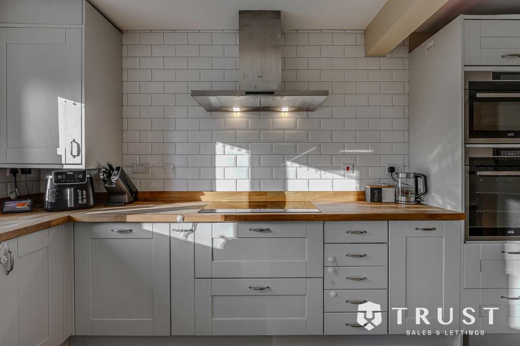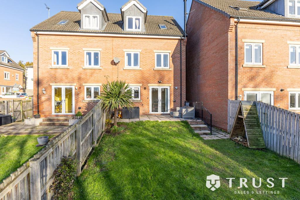 This beautifully presented four-bedroom, three-bathroom semi-detached house offers an exceptional blend of modern style and comfortable family living across three well-appointed floors. The property welcomes you with a contemporary hallway featuring sleek laminate flooring and modern lighting, setting the tone for the inviting and spacious layout throughout. The open plan kitchen and living area serves as the heart of the home, boasting stylish kitchen units, elegant wooden countertops, a striking subway tile backsplash, and high-quality integrated appliances including a built-in oven and induction cooktop. Abundant natural light streams through large windows and French doors, which provide direct access to the private, fully fenced garden with a well-maintained lawn, patio area, and a practical storage shed - perfect for entertaining or relaxing outdoors. The spacious living areas are enhanced by plush carpeting, modern decor, and comfortable seating, creating a warm and welcoming atmosphere ideal for family gatherings and every-day relaxation.