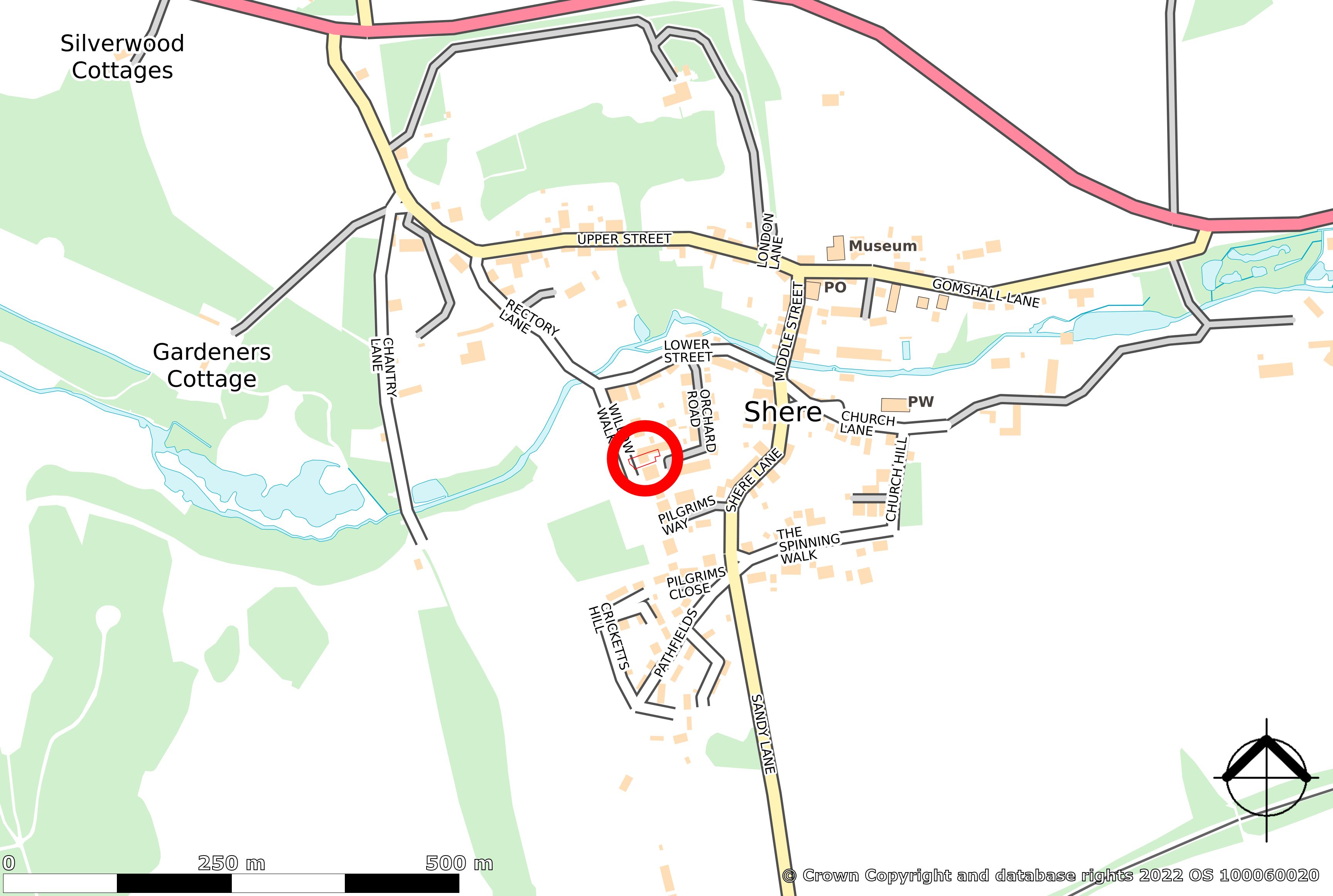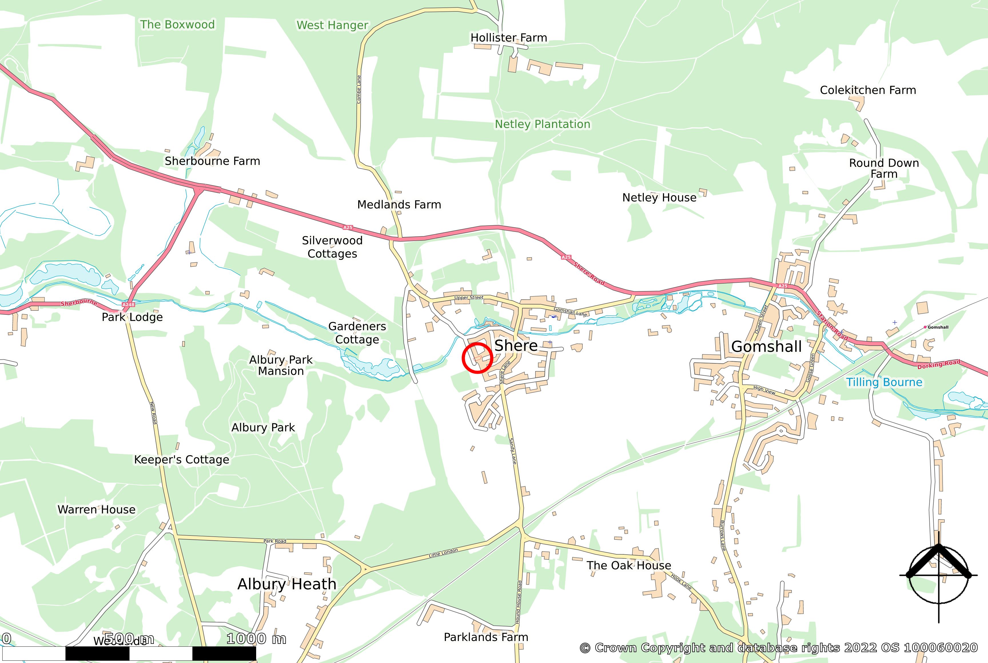 A superbly located & completely refurbished 2 double bedroom ground floor flat with a good size private garden & off-street parking situated towards the end of a quiet cul de sac in the heart of the sought after village of Shere. Accommodation comprises a large sitting room open plan to dining area with feature fireplace, storage cupboards & double doors providing access to the garden. This is all open plan to a superbly fitted kitchen/breakfast room with a good range of fitted units to include integrated appliances, a freestanding Range & a central island with breakfast bar, complemented by Quartz worktops, fitted shelves & a lovely area for a window seat. There is also a large double bedroom with feature fireplace & freestanding wardrobe, a 2nd double bedroom with storage cupboard (housing the boiler) & a newly fitted shower room with shower cubicle, wc & basin. The property benefits from a high specification throughout to include solid wood flooring with under floor heating. Outside there is a large paved patio to the rear of the property, the rest of the garden is then mainly laid to lawn with flower borders, all fully enclosed by attractive fencing. A gate provides access to the driveway to the side, with off-street parking to the front (adjacent to the fence) for 2 cars. Situated in a very quiet, rural & desirable location with direct access to stunning walks, within a few minutes walk of the centre of Shere.