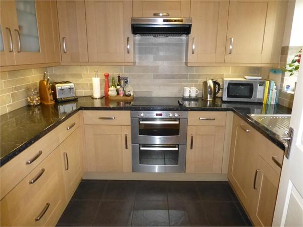 9' x 8' 5" (2.74m x 2.57m) Twin UPVC windows with front aspect, range of eye level cupboards with built in extractor fan, roll edge preparation surface with inset 4-ring electric hob and tiled splashback over, drawers and cupboards under, built in electric oven, stainless steel one and a half bowl single drainer sink with mixer tap, integrated fridge/freezer, integrated dishwasher, washing machine.