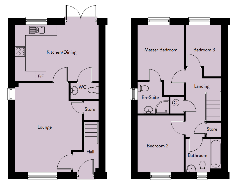 The Furnace is a stylish three-bedroom semi-detached home designed for modern living. At the heart of the property is a spacious kitchen and dining area, complete with French doors that open onto the private turfed garden. A separate lounge at the front offers a cosy retreat, while a welcoming hallway connects the ground floor and includes a handy WC and storage.
