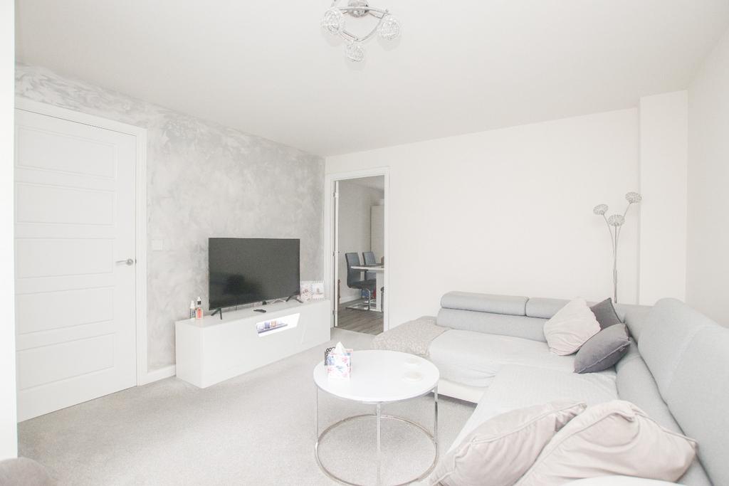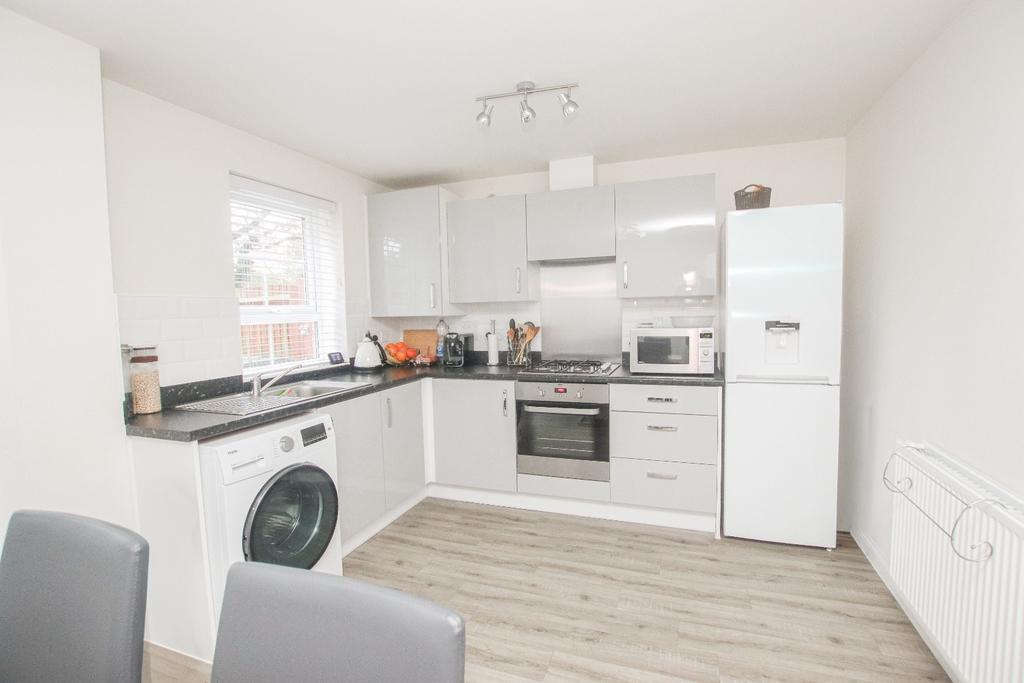 Entering the property through the uPVC front door, you are welcomed into a bright hallway with laminate flooring and a wall-mounted radiator. To the right is a useful ground floor WC, fitted with a corner hand basin, WC, and matching flooring.The lounge sits to the front of the property and offers a warm and comfortable living space, complete with fitted carpet, a front aspect window, plenty of power sockets, and TV points — creating an ideal area for everyday relaxation.Moving through to the kitchen diner, the space features laminate flooring, a modern range of wall and base units, a gas hob and electric oven, stainless-steel sink with drainer, and space for both a fridge freezer and washing machine. A rear aspect window and French doors open directly onto the garden, allowing plenty of natural light and providing the perfect indoor–outdoor flow for entertaining. The rear garden is a fantastic size for the development — mainly laid to lawn with a patio seating area and enclosed by fencing, offering both privacy and practicality for families and pets alike.