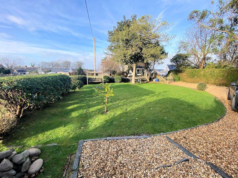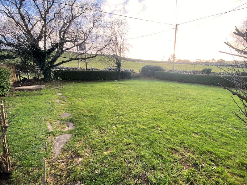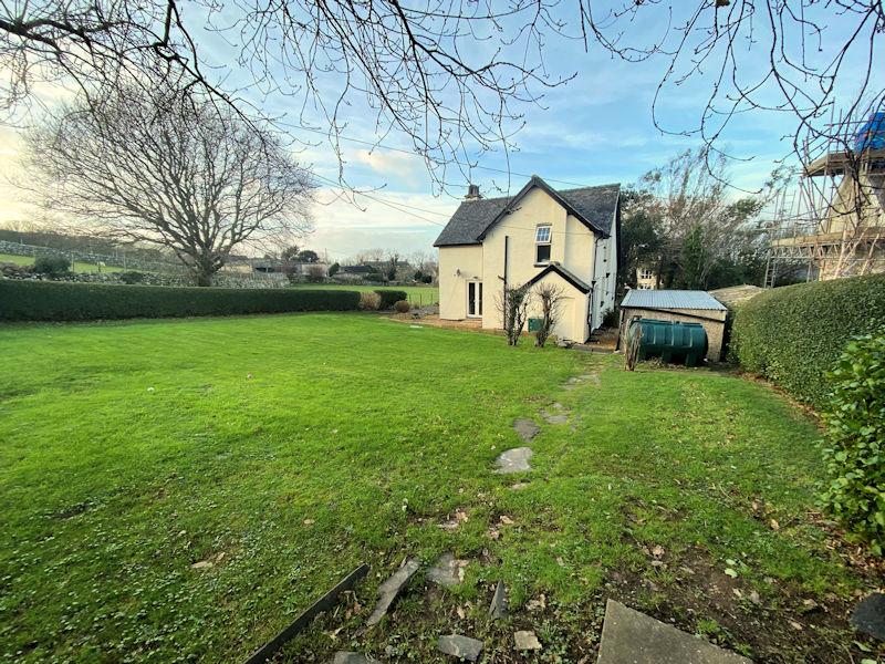 Gated entrance to gravel driveway, laid to lawn, mature shrubs and trees, paved terrace, access either side to rear, laid to lawn, pre cast concrete garage, oil tank, oil boiler.