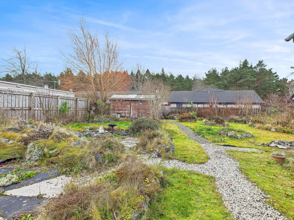 The well-established garden grounds offer a mix of lawn, gravel and landscaped areas with a variety of plants, trees and shrubs. There are numerous timber garden sheds and plenty of space for additional outbuildings, future development or off-street parking. The external oil tank and outside tap can also be found to the rear.