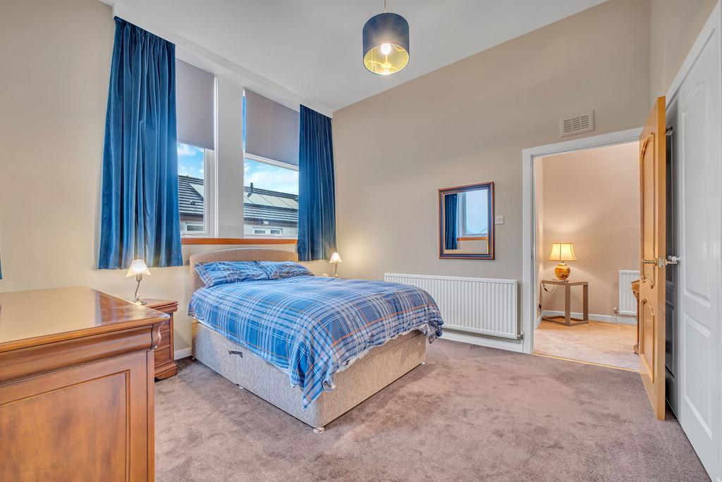 There are three double bedrooms, each with built-in storage cupboards and wardrobes, providing ample space for your needs. The family bathroom is fully tiled and includes a WC, a wash hand basin with storage, a heated towel rail, and a bath with an overhead shower.