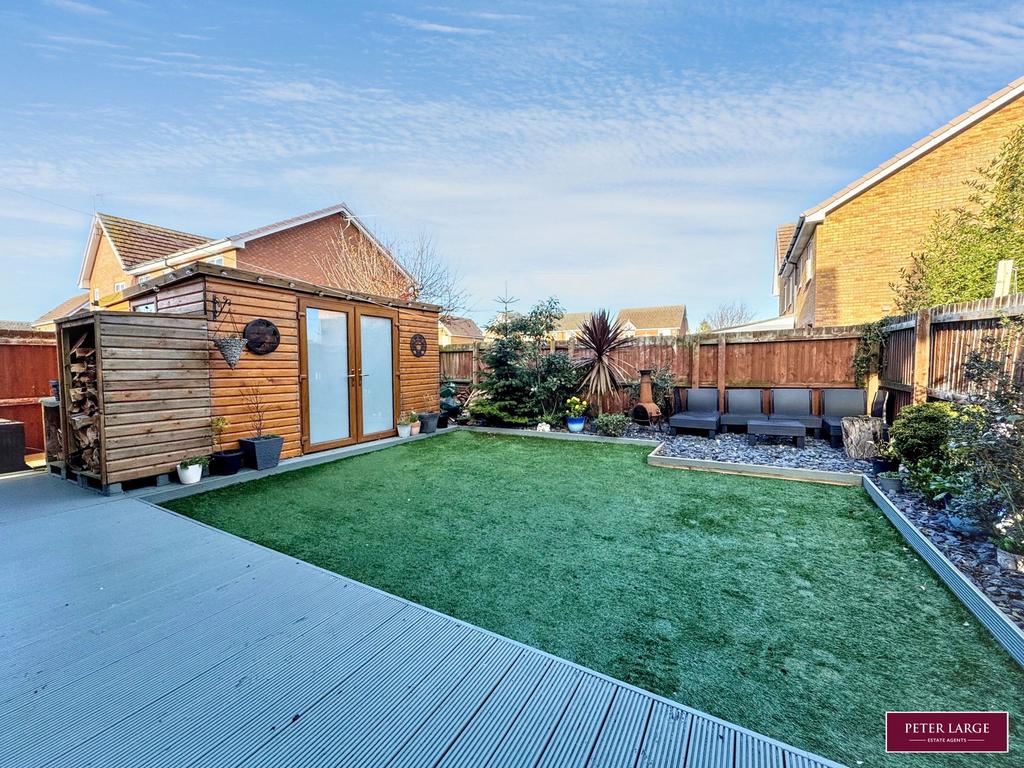 The property is approached over a driveway providing parking for two vehicles, gravelled easy to maintain gardens with an established hedge providing privacy to the side. A timber gate gives access to the landscaped, enclosed rear garden having a decked patio with artificial lawn adjoining, slate gravelled seating area, log storage and good size timber Summer House with power and light installed, bounded by timer fencing.