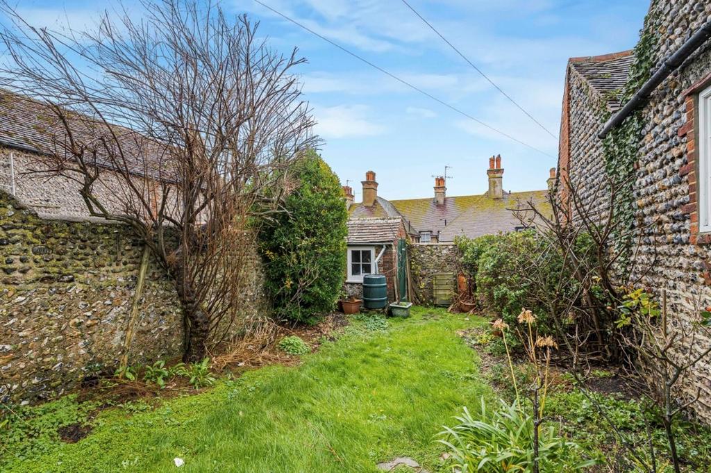 The exterior of the cottage is equally appealing, with both front and rear gardens providing attractive outdoor spaces to enjoy throughout the seasons. The front garden is enclosed by flint walls, with mature shrubs and a pathway leading to the entrance, creating a welcoming first impression. At the rear, the good-sized garden offers a private oasis with established planting, lawned areas, and patio space. The property benefits from its idyllic position within the village, just moments from the seafront, scenic walks, and the vibrant local community including pubs, restaurants, shops and the historic pond and Kipling Gardens. The property’s central location ensures all amenities are within easy walking distance. This delightful cottage combines period charm with outdoor space and convenience, making it an ideal choice for those looking to create a bespoke home in a picturesque village setting.