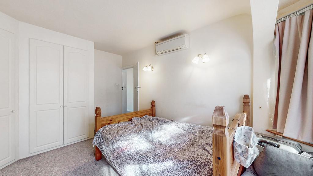 Upstairs leads to three bedrooms with air conditioning and a family bathroom with a separate WC. Two of the bedrooms have fitted wardrobes.