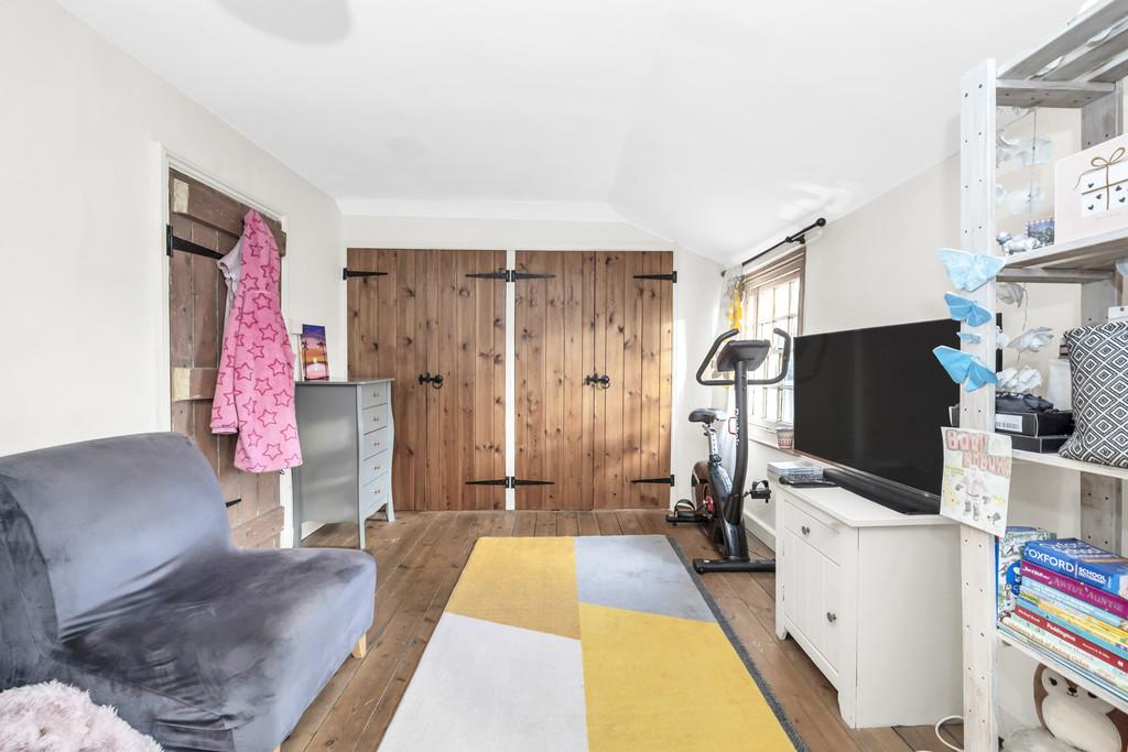 On the first floor the landing has a window to rear. The bathroom is fitted with bath and shower over, wc and wash hand basin, stripped floorboards and latch door. Bedroom two is a single room with window to the side. There is an airing cupboard housing a high pressure water tank, The master bedroom has built in wardrobes and two sash windows to the front aspect.