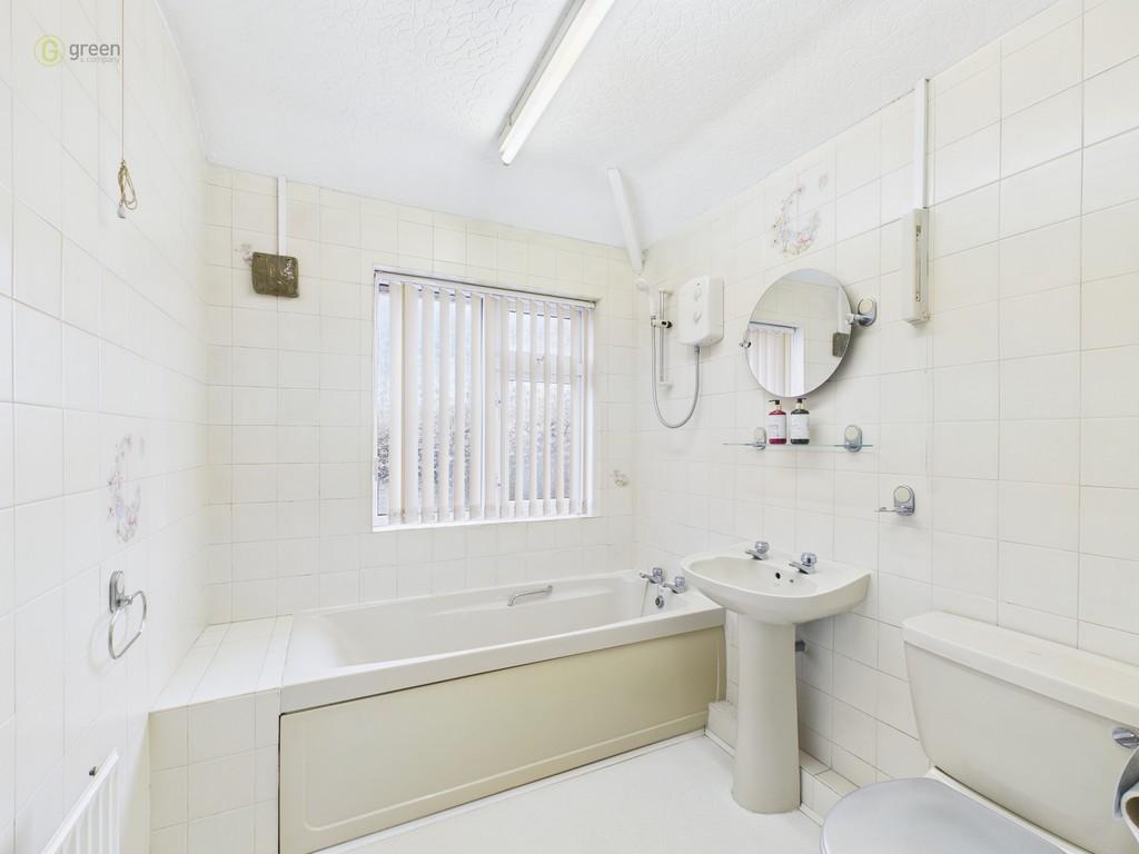 BATHROOM Having double glazed window to rear, bath, electric shower over the bath, wc, wash hand basin, fully tiled, lino flooring, ceiling light and cupboard housing the boiler.