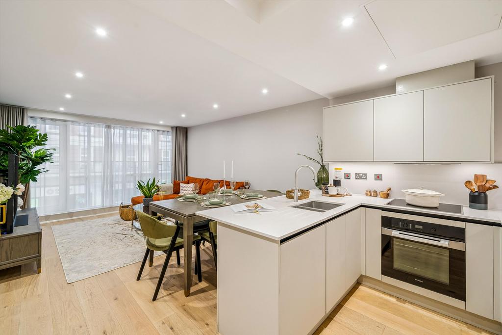 This 3 double bedroom apartment offers, a spacious open-plan kitchen and living area with sleek, modern appliances: full-height fridge/freezer, oven, electric hob, washer/dryer, and dishwasher