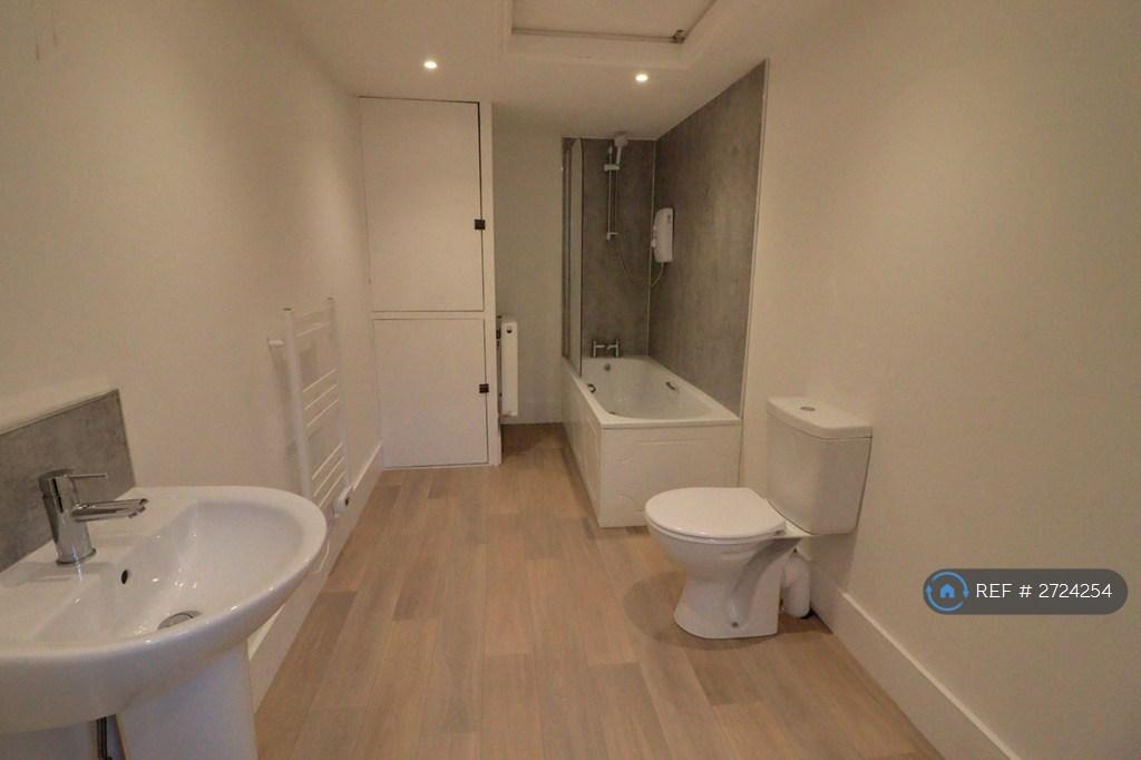Comprising a panel bath with electric shower over, pedestal wash hand basin and close coupled toilet. Airing cupboard housing the hot water cylinder.