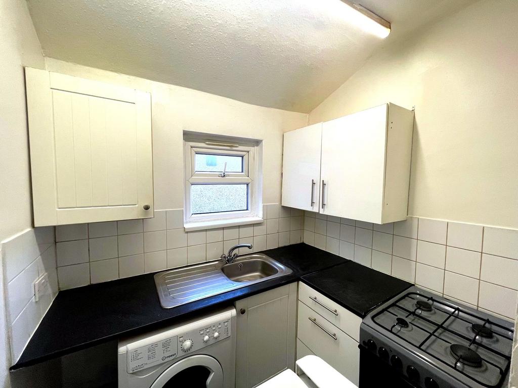 Separate Kitchen: Fitted with ample storage units, gas hob, oven, washing machine, and stainless-steel sink.