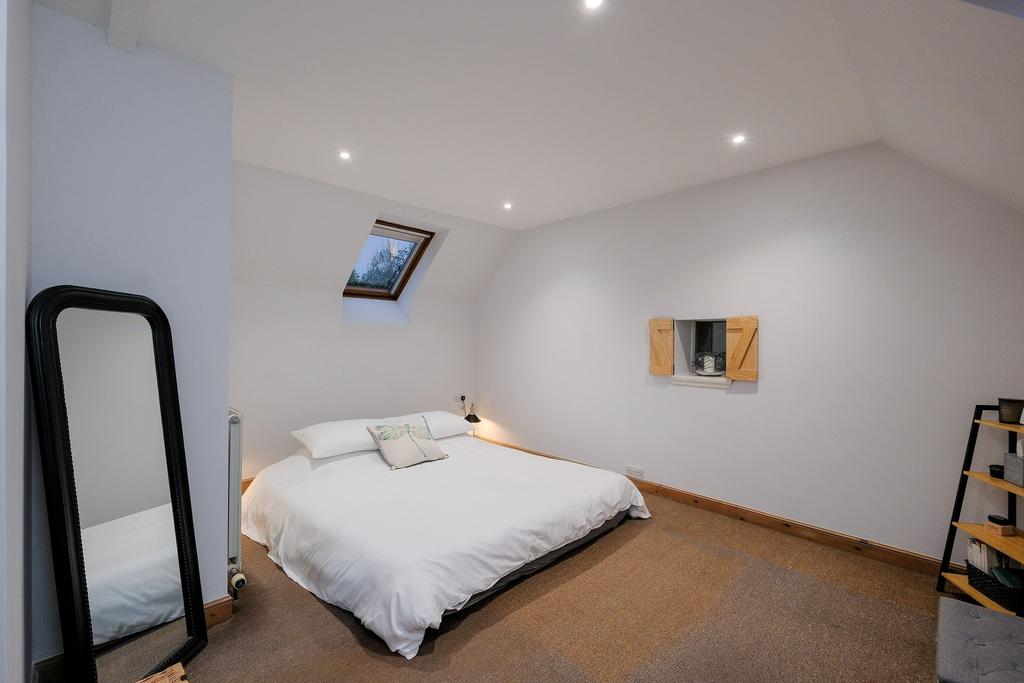 A beautiful room with great ambiance. The focal point of the room is a wood burning stove with a tiled hearth, the lum has been fully lined. There is a portion of the ceiling which is vaulted, giving a feeling of space. There is a large storage cupboard in the lounge.