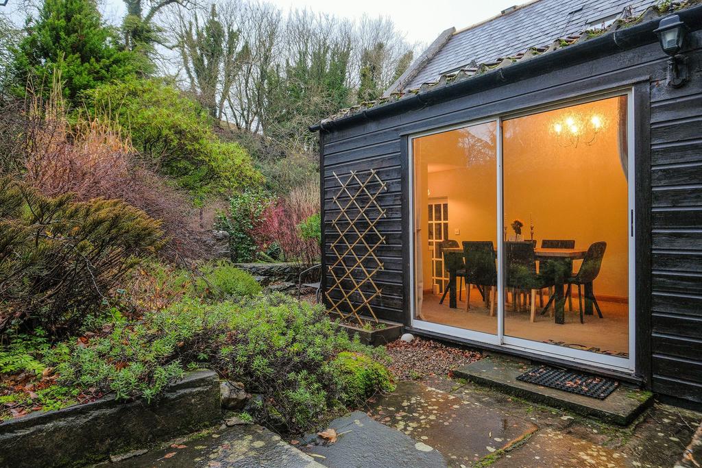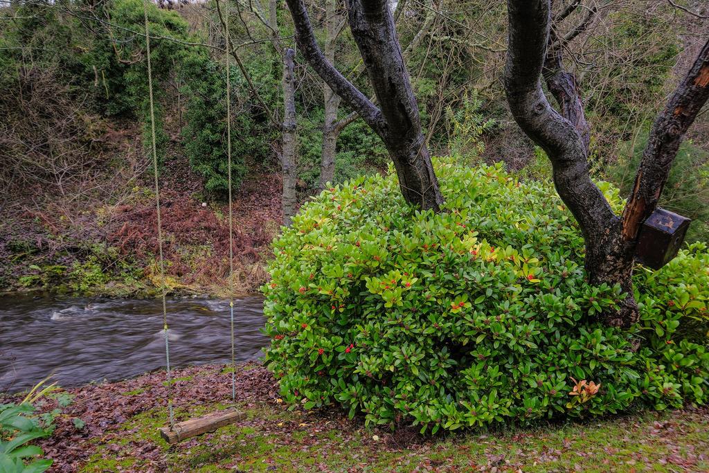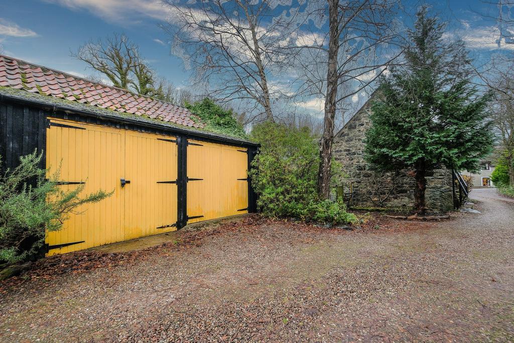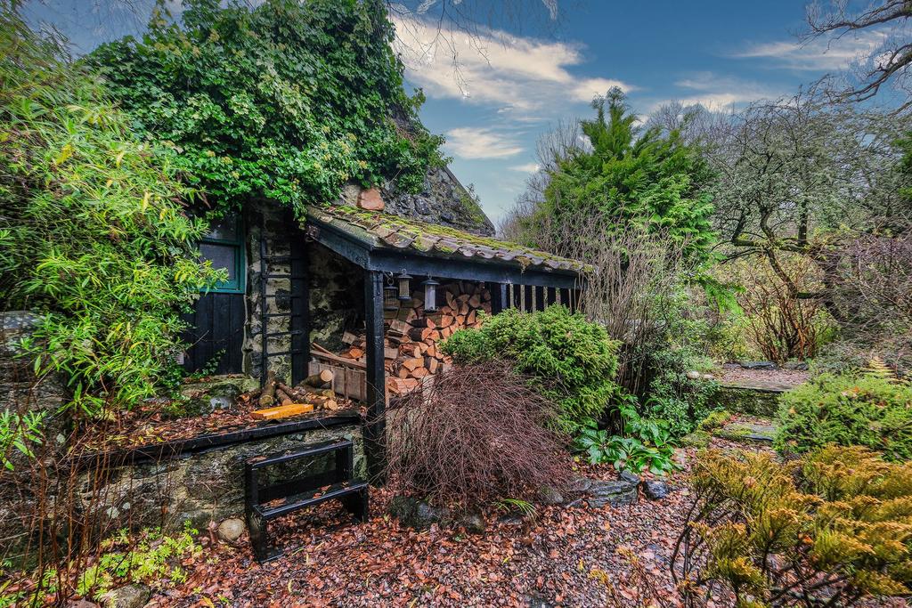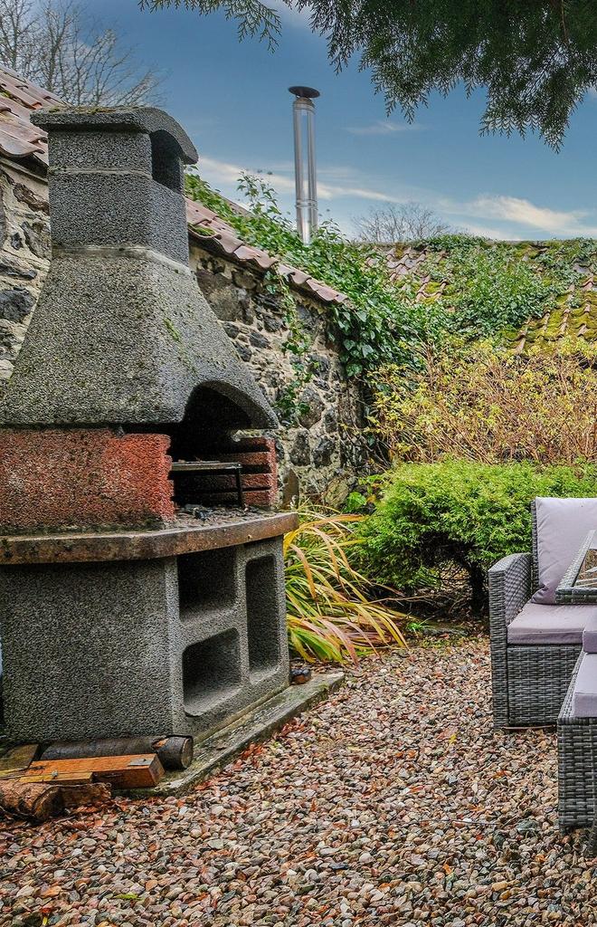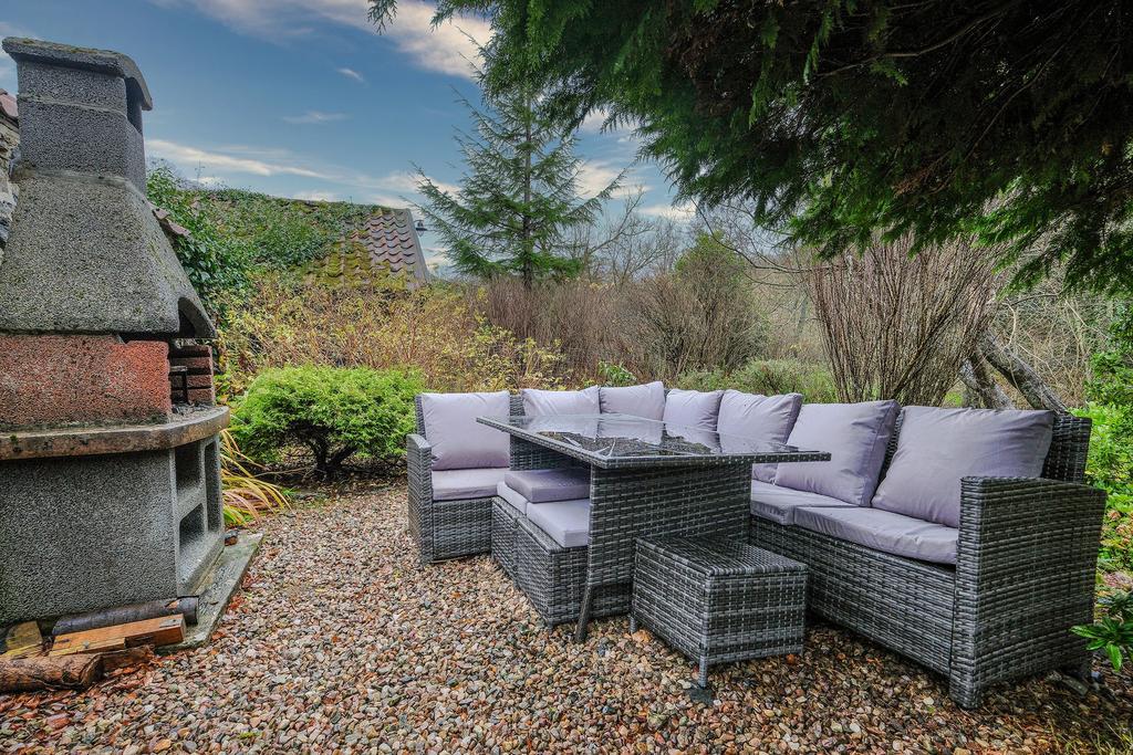 A mature garden which flows beautifully, bursting with greenery. The garden has a patio area with a stone built BBQ and seating area. There is an elevated terrace with a summer house, great for stargazing. There are steps down to the lower garden, where you will find a wooden swing. The Boyne burn flows past, creating a serene sound with the water. You have excellent views of the historic bridge.