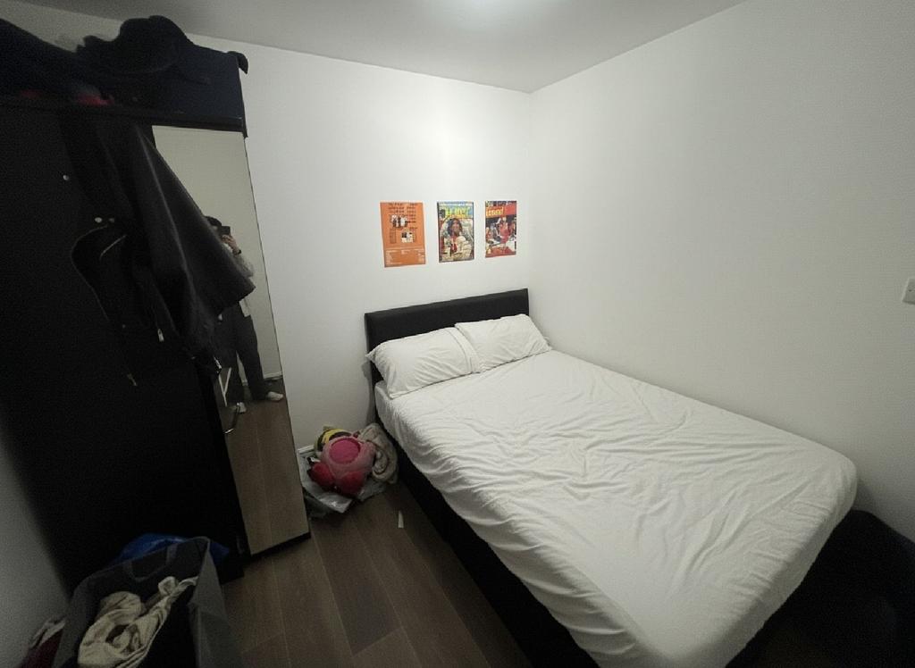 Each of the three double bedrooms is fully furnished with a bed, wardrobe, desk, and chair—ideal for both study and relaxation. The flat features a sleek open-plan kitchen and lounge area, creating a sociable and functional hub for cooking, dining, and unwinding. The kitchen is equipped with modern appliances, and the living space is bright and contemporary.