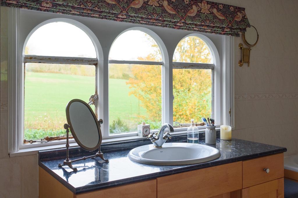 The ground floor has three impressive reception rooms, providing versatile spaces for both relaxation and entertaining. The light filled, triple aspect living room serves as a delightful hub, with views across the stunning gardens. A large study provides an ideal environment for working from home, while the separate dining room, with its vaulted ceiling, provides an elegant setting for formal dinners and leads seamlessly into a bright conservatory, perfect for enjoying the garden views year round. The country style kitchen/breakfast room is both practical and charming with a double oven and hob and space for free standing appliances.