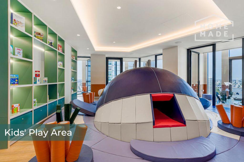 Roof terrace with sweeping city views and a dedicated children’s playroom.