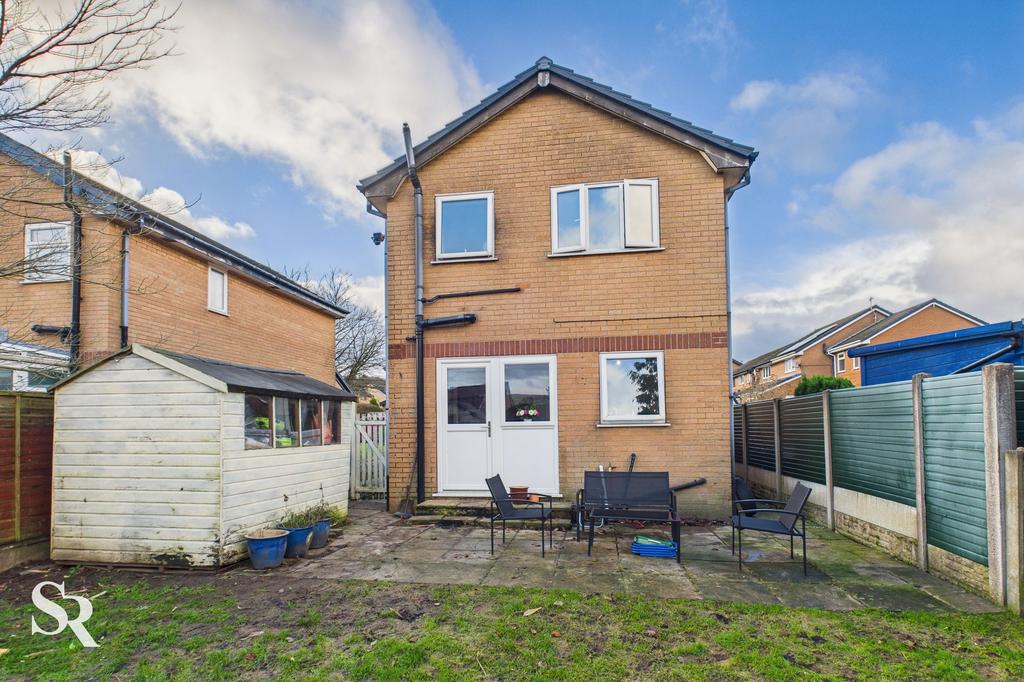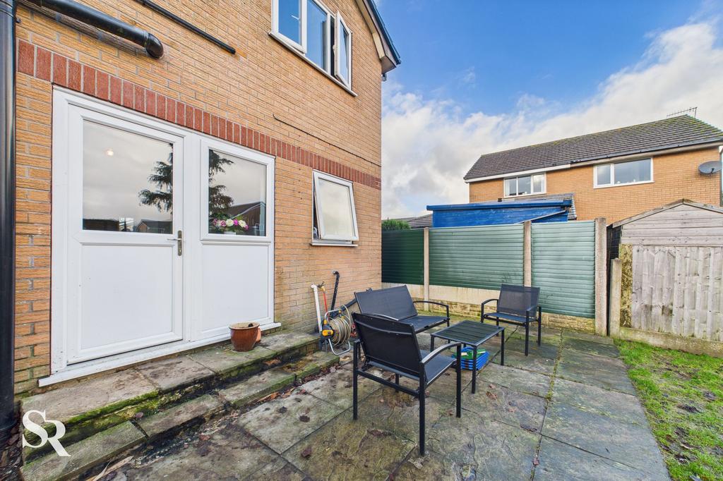 The rear garden is an enclosed and private space offering excellent outdoor potential. It features a paved patio area immediately outside the kitchen/diner, perfect for outdoor dining and entertaining. The rest of the garden is mainly laid to lawn, providing space for recreation. A timber shed provides useful external storage. Boundaries are secured with a mix of fencing, and a side gate allows easy access to the driveway and front of the property.