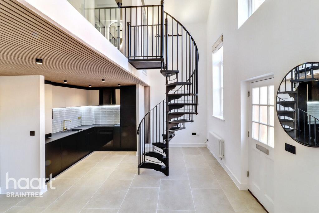 Beautifully refurbished throughout, this striking property immediately impresses with its standout metal spiral staircase, taking centre stage as you enter. The stylish open-plan kitchen and lounge offers modern living at its finest, with a fully fitted kitchen featuring dishwasher, fridge-freezer and washing machine, complemented by sleek black cabinetry and gold-effect finishes. The lounge elevates the space further with a wall-panelled TV and integrated surround sound included, perfect for cosy evenings or entertaining.