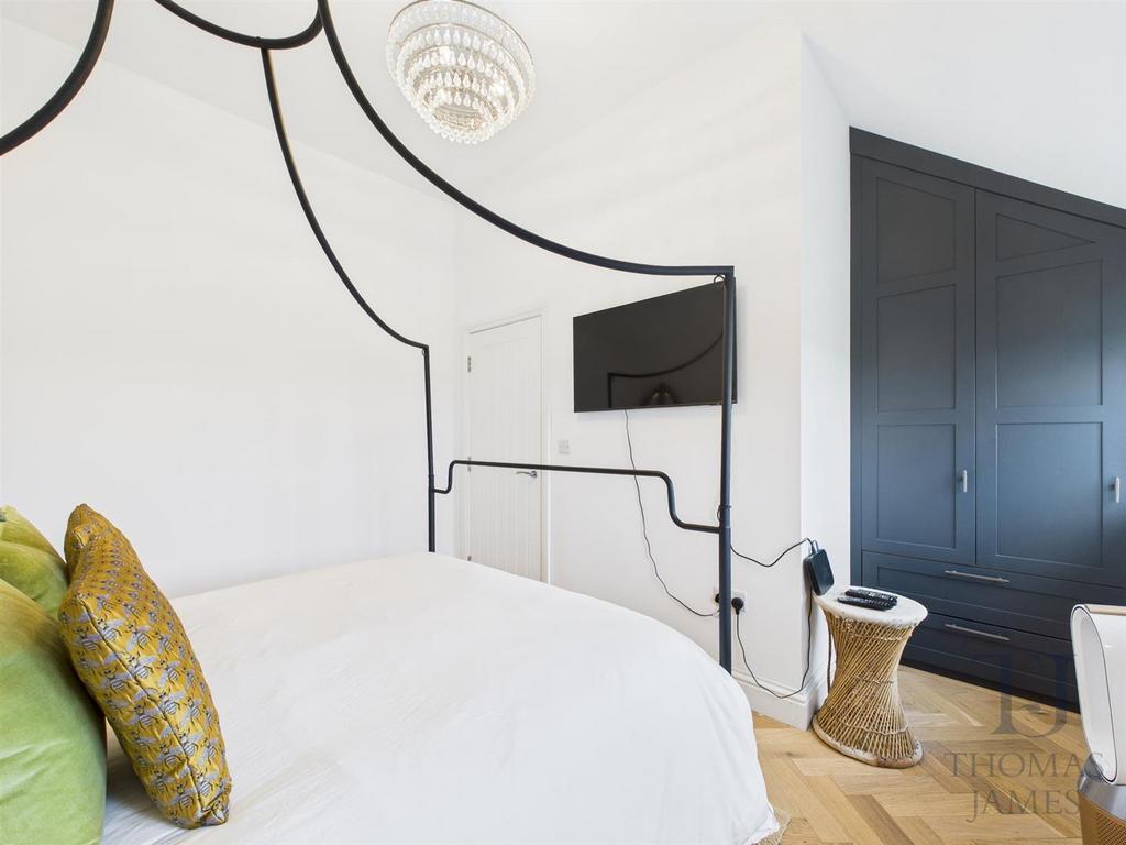 Bedroom three is single in size, and is currently being used as a dressing room. This room has a window to the rear, a range of built in wardrobes, and a ceiling light point.