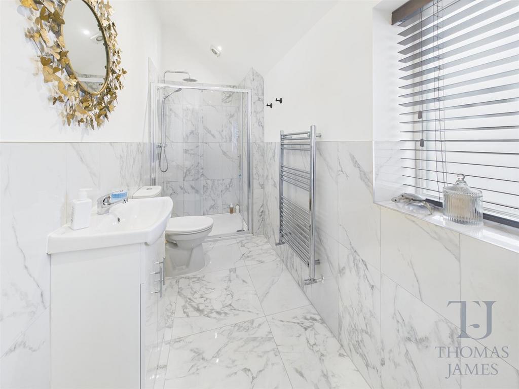 Completing the accommodation, the shower room has a large shower cubicle, a wash hand basin set in a vanity unit, and a wc. There is a window to the front, and a radiator.