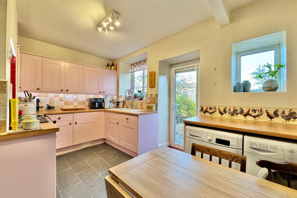 Presented throughout with a neutral decor to maximise the light and spatial feeling, the hallway leads you directly to the family living room. This room has light wood flooring and a feature display alcove. Leading off, at the rear of the cottage, the kitchen/breakfast room is the hub of this family home. It is fitted with a range of units, contrasting worktops, Range style cooker and has underfloor heating. The attractive rear garden and terrace (currently being repaved with Purbeck stone) is accessed from the kitchen, enhancing the outdoor/living space.
