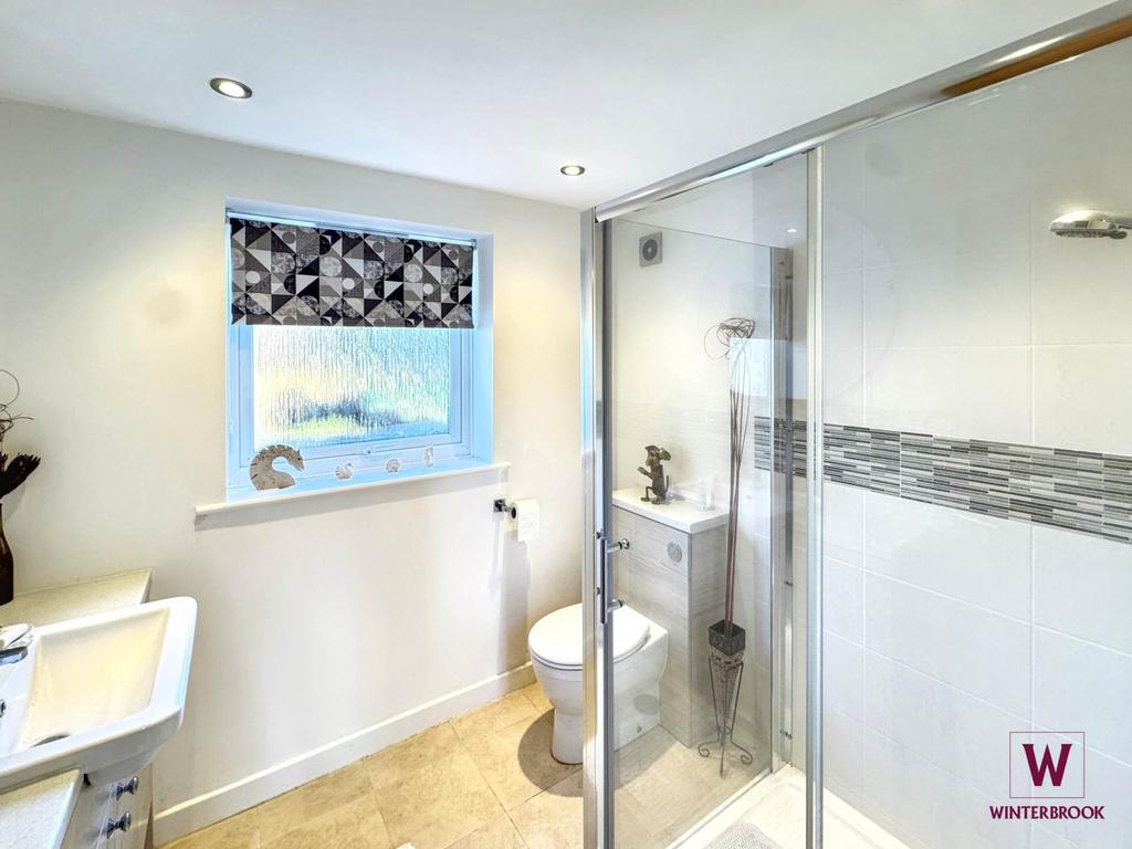 The ground floor also hosts the main bedroom, complete with a stylish modern en-suite shower room.