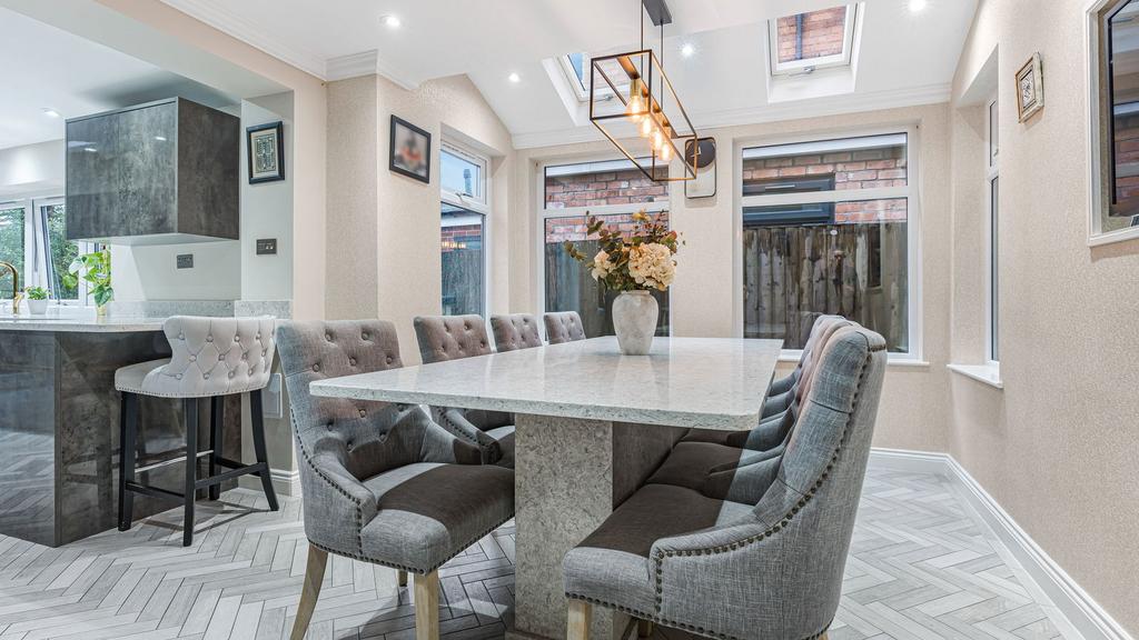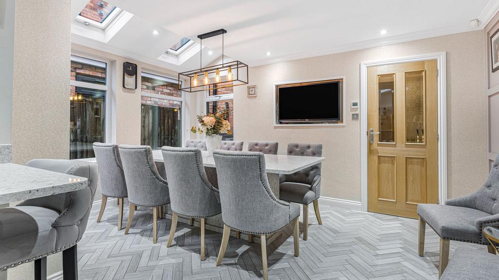 The home benefits from gas central heating, double glazing and a recently installed Vaillant boiler (approx. 3–4 years old and under warranty). The extended kitchen/diner features quartz worktops, underfloor heating and all integrated appliances including fridge, freezer, dishwasher, multifunction oven, microwave, gas hob and extractor. A custom-made dining table designed to complement the worktops is also included, along with custom-made blinds throughout.