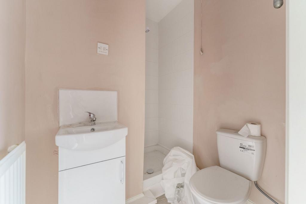 UPVC opaque double glazed window to front, shower cubicle, pedestal sink, W.C.