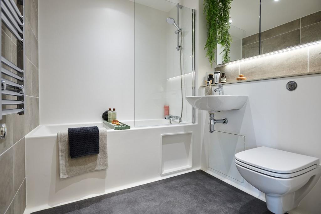 This contemporary two-bedroom apartment. The living space features a large open plan kitchen/living area, fitted with modern appliances including integrated fridge-freezer and dishwasher; two well sized bedrooms on either side of the living space, master bedroom with en-suite with spacious floor to ceiling fitted wardrobes; stylish furniture sets throughout, a washer/dryer and inclusive superfast Wi-Fi. In addition, there is close access to various onsite amenities such as co-working hub, residents lounge, 24/7 Gym and roof terrace.