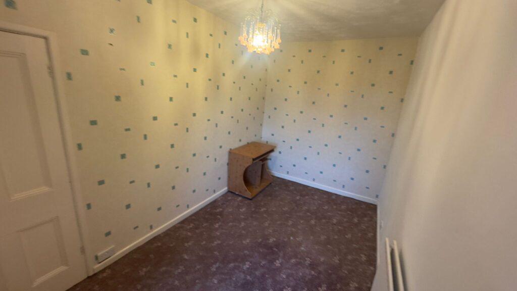 Bedroom 2: Across the hallway is the second bedroom with similar neutral décor. There is space for a double bed, and the room comes furnished with a wooden desk for convenience. This versatile space may also be used as an office/workspace, nursery, child's room or storage, catering to your needs. A window provides natural light.