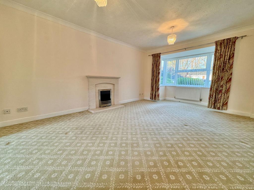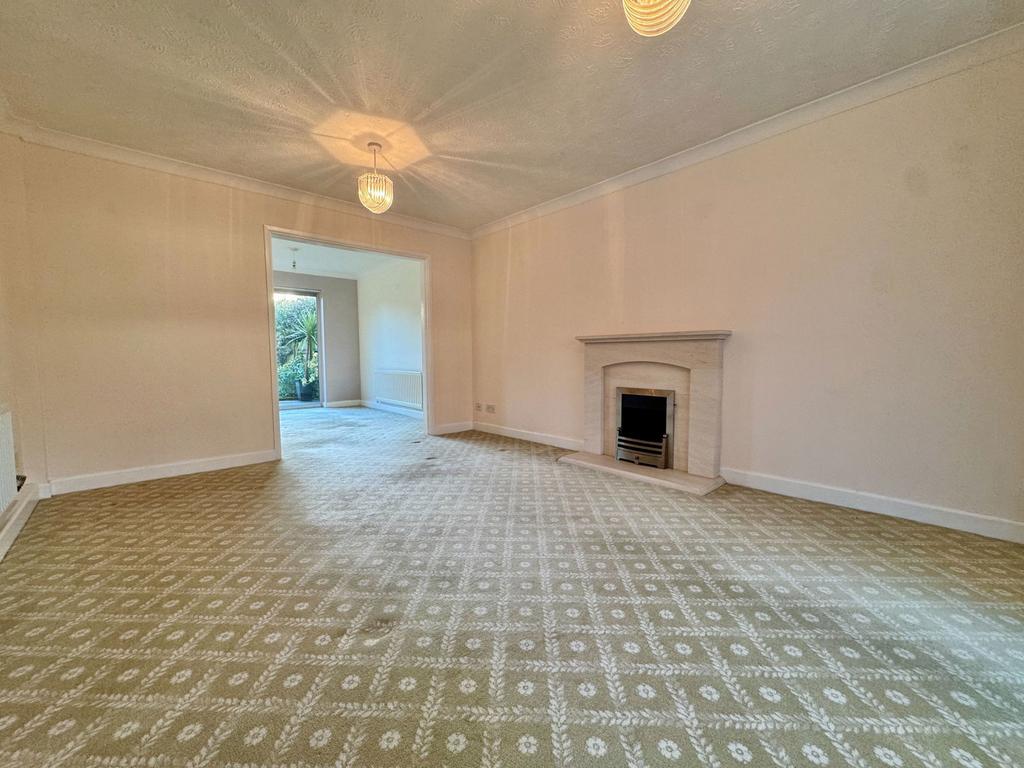 PVCu double glazed bay window to the front, living flame effect gas fire with stone surround, mantle and hearth, two radiators, and access to: