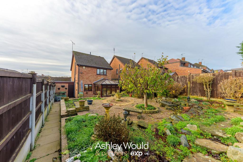 This charming three bedroom link-detached house offers fantastic potential and a wonderful homely feel throughout. Set back with its own spacious driveway and single garage, the property provides ample parking as well as practical space for storage. As you step inside, the staircase sits directly ahead, with the lounge positioned to your left. This bright and welcoming room benefits from a beautiful bay window that fills the space with natural light creating a comfortable and airy atmosphere. From the lounge, you are guided into the well-sized kitchen/dining room with a dining area, perfect for entertaining guests or a family meal. The kitchen is done to a nice standard, with plenty of counter space and cupboard storage. The dining area leads seamlessly through to a cosy conservatory, flooded with sunshine and overlooking the truly stunning rear garden. This is the ideal peaceful spot to relax and enjoy the view, with direct access via French doors into the garden itself. Upstairs, there are two double bedrooms complete with fitted wardrobes, providing plenty of storage space. The third bedroom is versatile and a good size, with potential for a guest bedroom, dressing room or home office. The family bathroom is also located on this floor, boasting attractive tiling and a bathtub, perfect for unwinding at the end of a busy day. Outside, the large garden provides a wonderful backdrop for outdoor living and is easy to maintain with a mix of gravel and patio. With its excellent layout, fantastic garden and huge potential, this house is ready for the next owners to make their own.