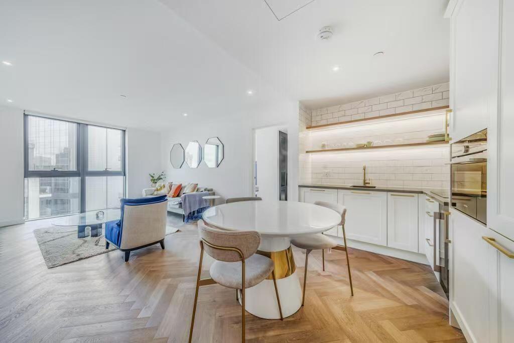 This west-facing 12th-floor apartment perfectly blends modern city living with the warmth and comfort of home. The contemporary fitted kitchen features fully integrated appliances, including a refrigerator/freezer, induction hob, extractor fan and dishwasher, as well as a whole-house water softener system and a dedicated kitchen drinking water system.