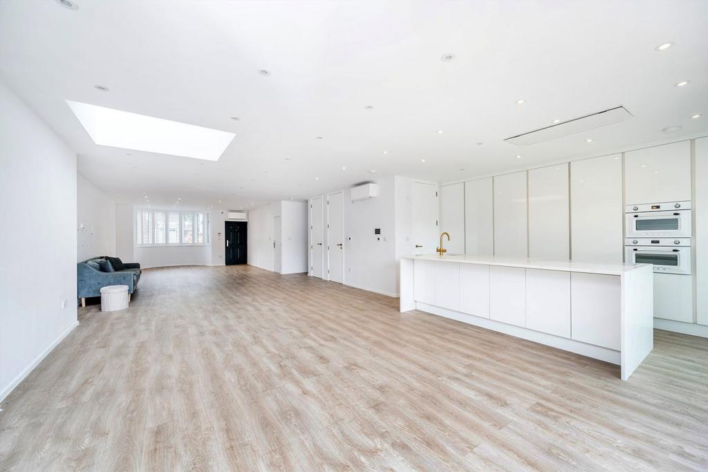 This beautifully finished property features a large reception room and a modern open-plan kitchen/dining area complete with premium integrated appliances and a stylish central island. Large sliding doors that open directly onto a generous private garden, which includes a sleek, modern outhouse ideal for a home office, gym, or studio.