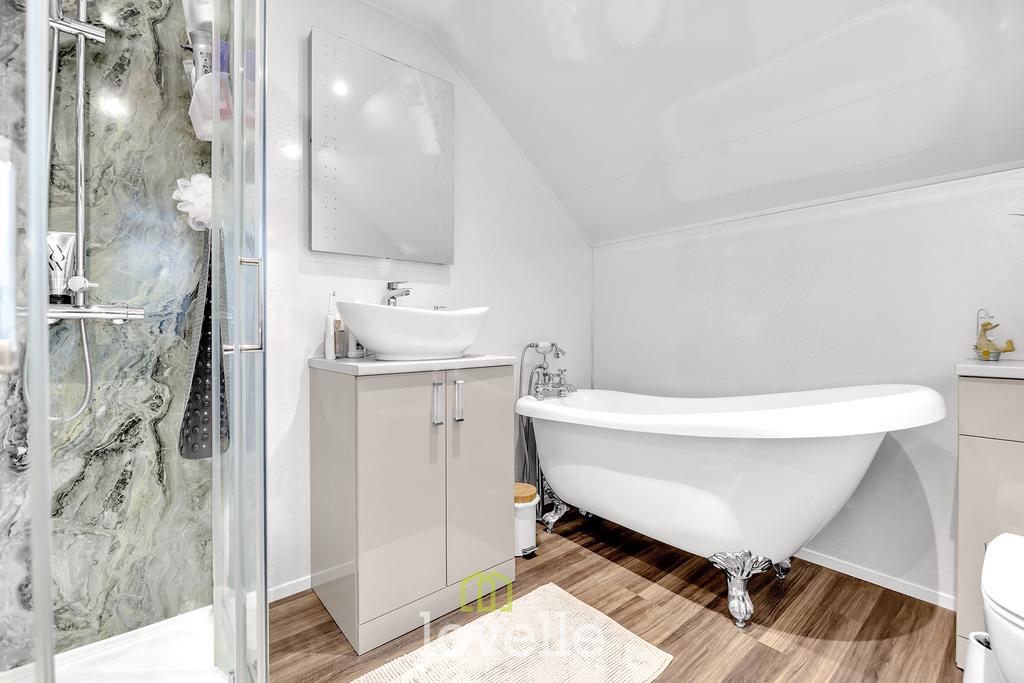 Upstairs, the main double bedroom includes quality ‘Haagensen’ wardrobes and dual aspect windows. A second double bedroom also benefits from dual aspect windows, bringing in plenty of natural light. The third bedroom is a spacious single with built-in wardrobes. On the ground floor, a further room functions well as a study or fourth bedroom, providing versatility for modern living. The bathroom is fitted with an exquisite suite comprising a freestanding bath, rainfall shower, sink with vanity unit and WC. Additionally, the property enjoys lots of storage space which has proven incredibly valuable to the current owners.