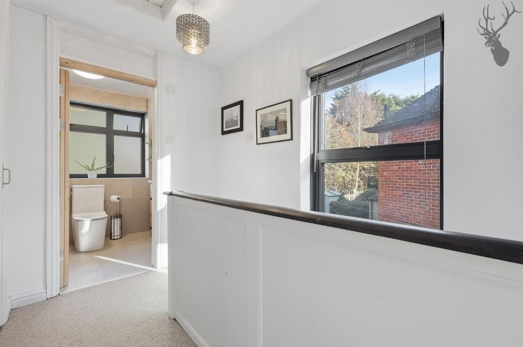 On the first floor, there are three well-proportioned bedrooms, providing flexibility for sleeping accommodation, home working or hobby spaces. A contemporary family bathroom is positioned off the central landing and includes both bath and shower facilities, making it ideal for busy households.