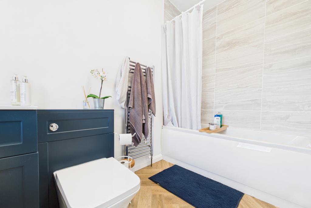 Decorative tiles to the wet areas and a window to the rear elevation.