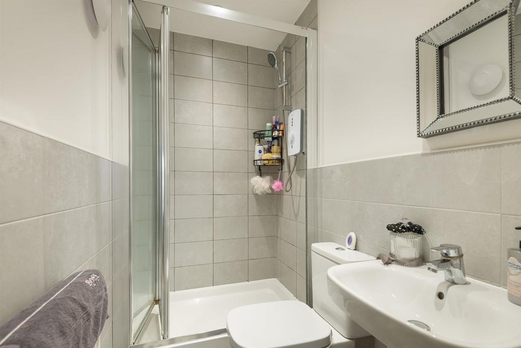 The principal bedroom benefits from fitted wardrobes and an en-suite shower room, with a window to the front aspect. The en-suite comprises a double shower, pedestal wash hand basin and W.C.