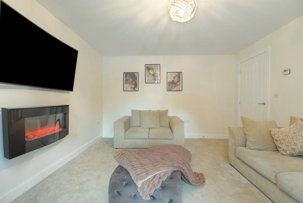 The lounge is positioned at the front of the property and features a broad window overlooking the front aspect along with a contemporary wall-mounted electric fire.