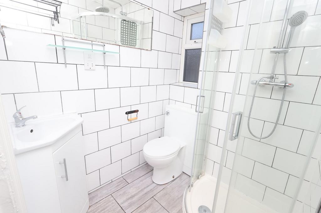 Upstairs, there are three double bedrooms. The main bedroom is positioned at the front of the house and benefits from two large windows that bring in plenty of natural light. The remaining two bedrooms offer good proportions and can be used for family, guests, or additional workspace. The bathroom is fully tiled and features a walk-in shower, corner basin, WC, and rustic-style flooring.