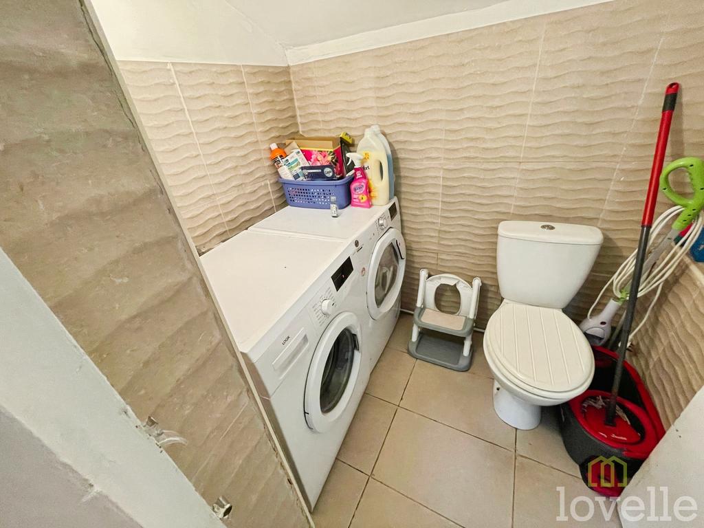 Laminate flooring, radiator, window to the rear aspect with doors leading to the W/C/Utility room and cupboard housing the boiler.