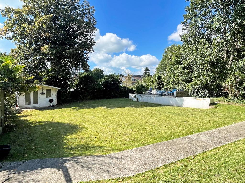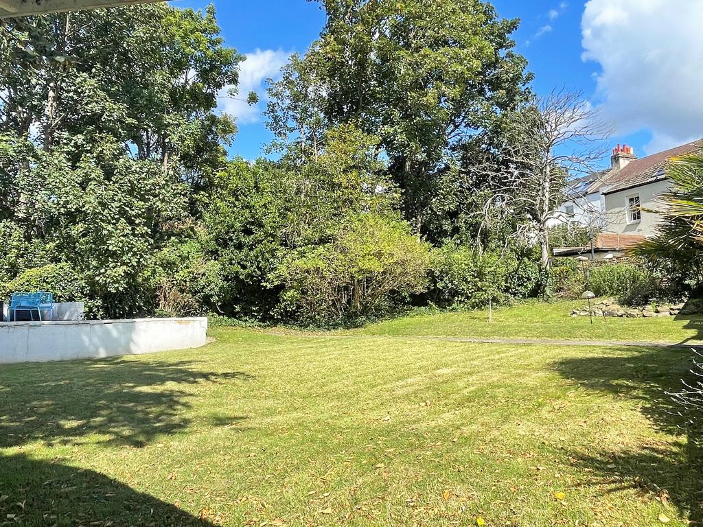 Use of large residents communal rear garden mainly laid to lawn with mature trees and shrubs.