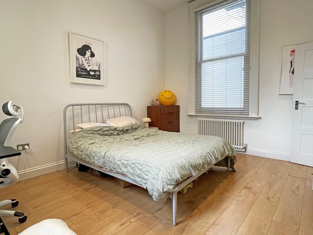 Wood laminate floor. x2 Modern period style radiators. Recessed downlights. Double glazed sash window to front. Large double glazed bay window with casement doors leading onto a small balcony.